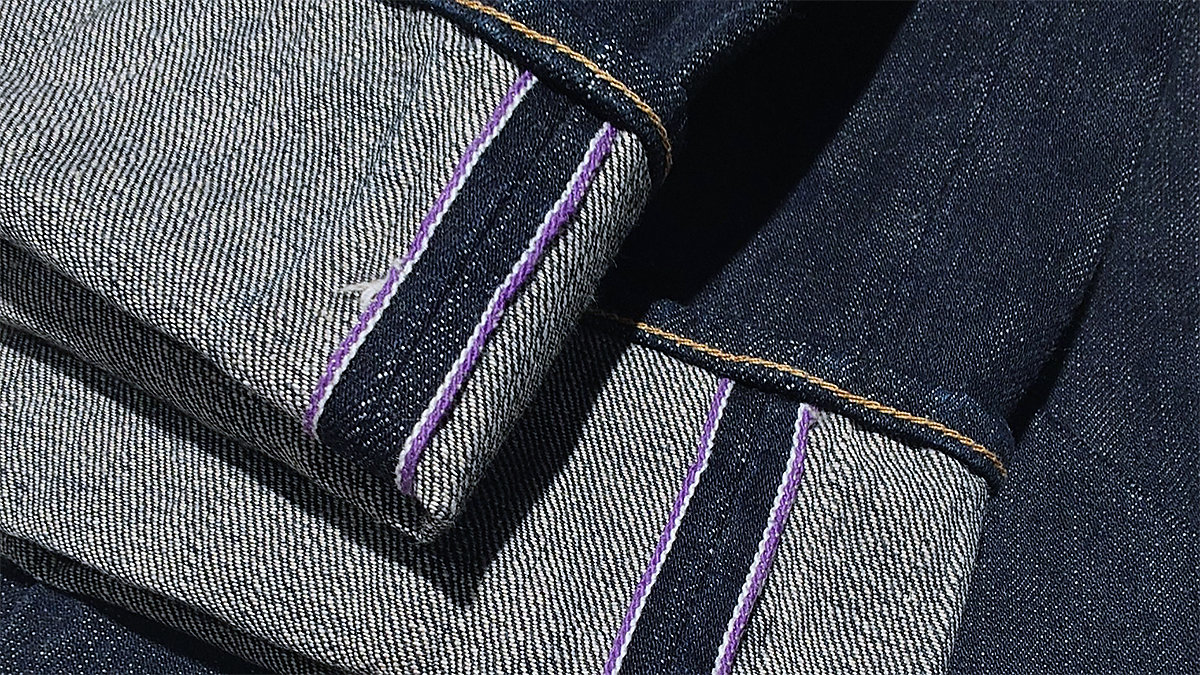 セルビッチは赤耳を採用するブランドが多く主流ともいえるところ、天然藍ブルーと調和する高貴な紫色を採用。縫製のステッチのアクセントと共に、さりげない個性としてブランドの独自性を表現しています。