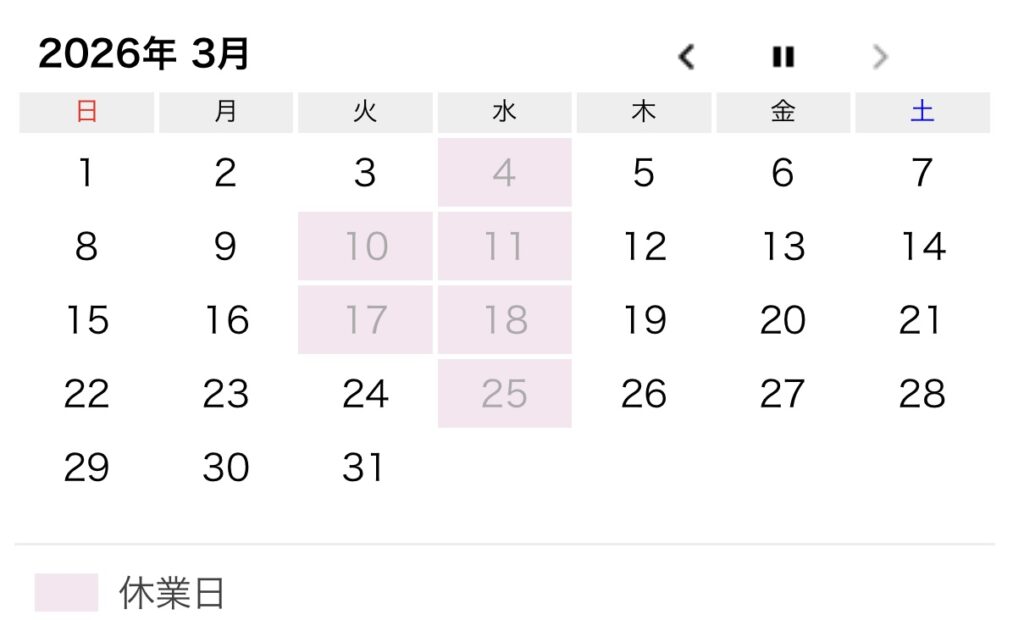 ※1月2月の冬季間は週2日の定休日とさせて頂きます。